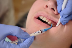 Using desiccation is very safe if used correctly. Biofilm and diseased tissue release water more easily, allowing the medicament to target this tissue without harming healthy gums. The desiccation application affects healthy skin quite slowly. If you were to get it on your skin or your patient's skin by accident, you can quickly rinse it off with no effect on the skin.